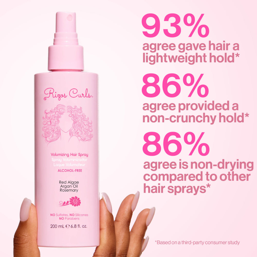 Our Alcohol-Free Hair Spray locks in hold & styling, without drying out your curls like typical hair sprays. It holds your hair in place for long-lasting styles, while offering a touchable hold without crunch or flakes! Made with 92% naturally derived ingredients that infuse your hair with the rejuvenating & nourishing benefits Rosemary, Argan Oil & Red Algae.