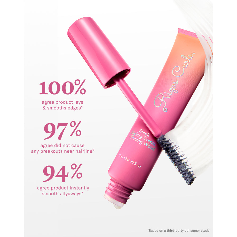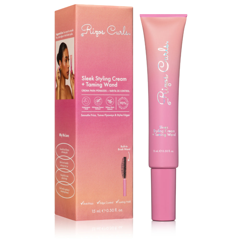 Sleek Styling Cream + Taming Wand is a creamy gel, strong hold formula that includes a built-in dual sided brush wand for easy on-the-go application to smooth frizz, hold sleek updos and precise edge styling. Features Willow Bark Extract & Lactic Acid (AHA) to prevent buildup at the hair line and Hyaluronic Acid & Castor Oil for hair hydration.